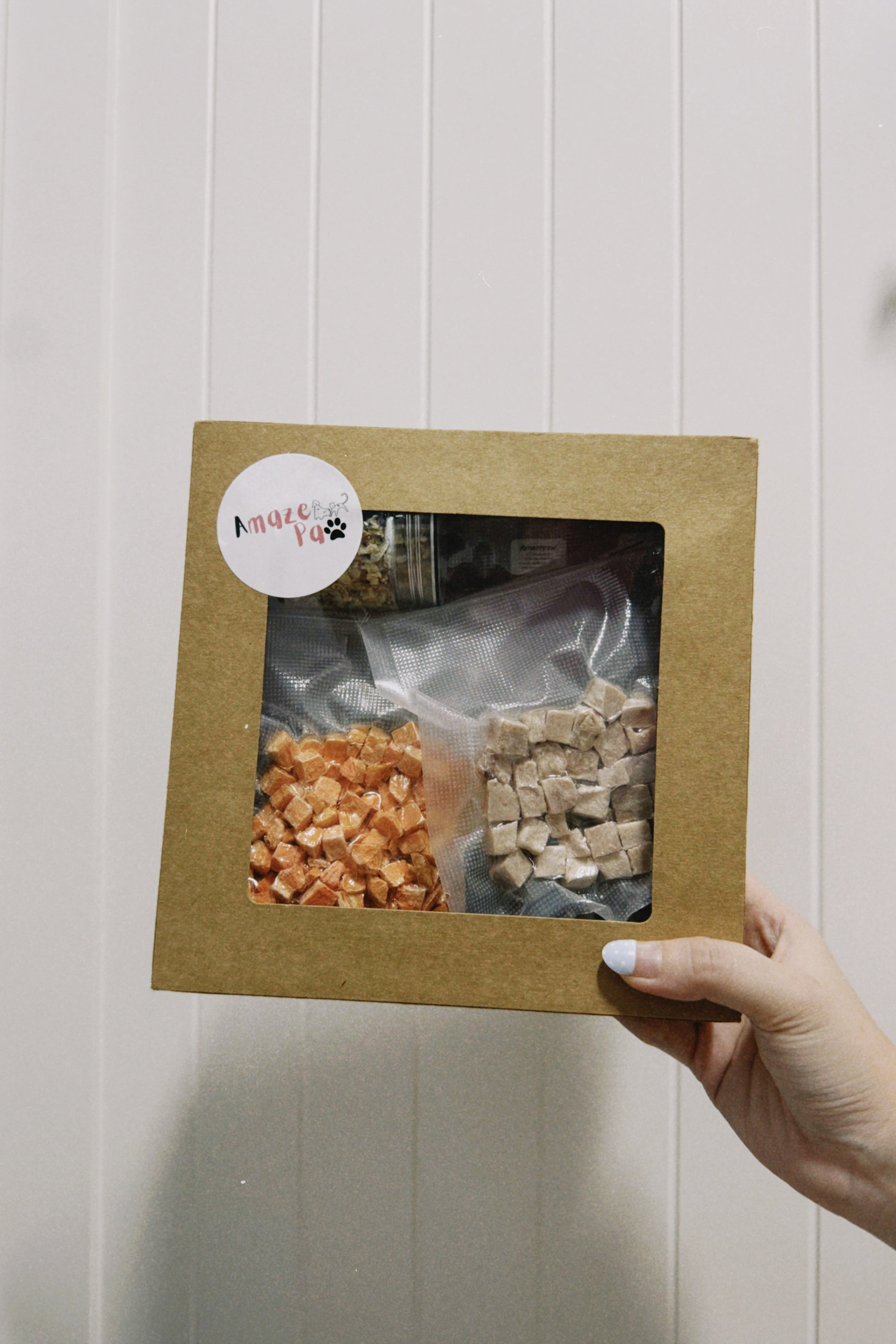 All the festive favourites in one wholesome meal! Crafted with turkey breast, blueberry “sauce”, cauliflower rice, and a carob “gravy” with carrots & Brussels sprouts — a nutritious, drool-worthy feast made just for your furkid. Each component is individually freeze-dried for maximum taste and texture.